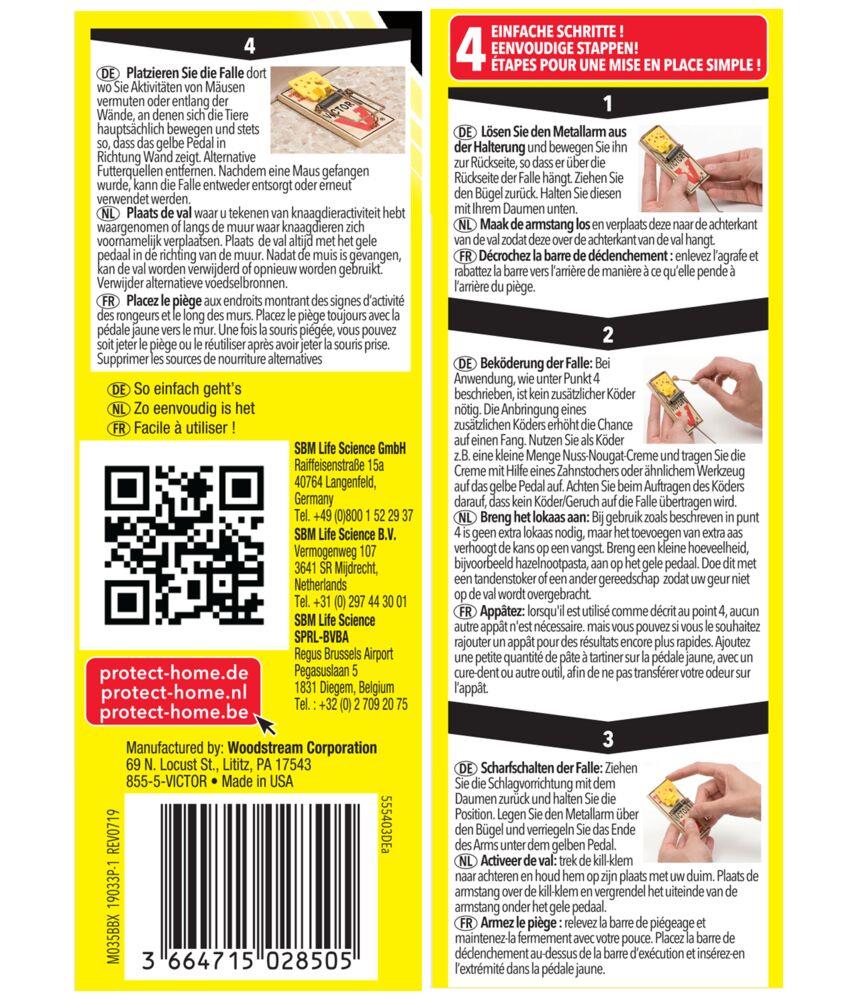 Anwendung & Dosierung: Metallarm aus der Halterung lösen und den Schlagbügel zurückziehen. Schlagvorrichtung spannen und mit Hilfe des Metallarms verriegeln. Die Falle an Orten mit sichtbarer Nageraktivität platzieren. Mehrere Fallen erhöhen den Bekämpfungserfolg.