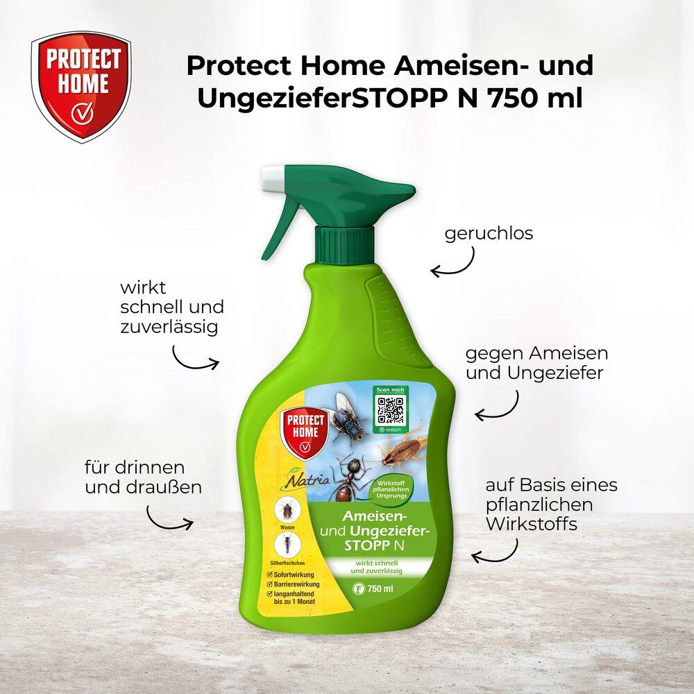 Das Protect Home Ameisen- und UngezieferSTOPP N wirkt schnell und zuverlässig, auf Basis eines pflanzlichen Wirkstoffs gegen Ameisen und einer Vielzahl anderer kriechender Ungeziefer. Natria Ameisen- und UngezieferSTOPP N ist geruchslos und daher ideal für die Anwendung in Innenräumen geeignet.