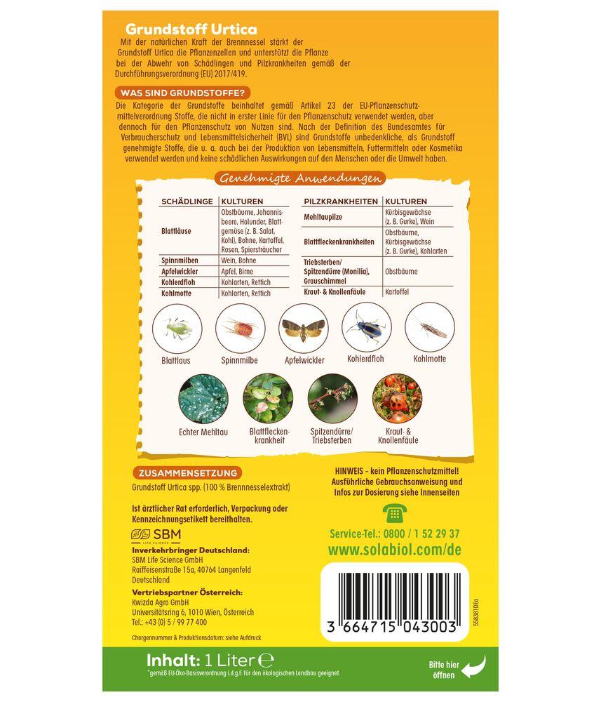 Der Solabiol Grundstoff Urtica aktiviert das natürliche Wachstum von Nutz- und Zierpflanzen und unterstützt die Abwehr von Schadinsekten, Milben und Pilzkrankheiten. Genehmigte Anwendungen sind: